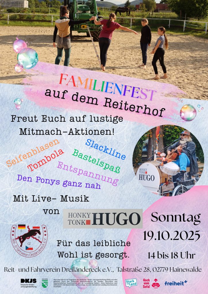 SAVE THE DATE!! Wir laden herzlich ein zum Hoffest mit Familiennachmittag. Bei Kaffee und Kuchen, leckerem Essen vom Grill und erfrischenden Getränken gibt es ein buntes Programm für die ganze Familie, Basteleien und Pferde zum anfassen.